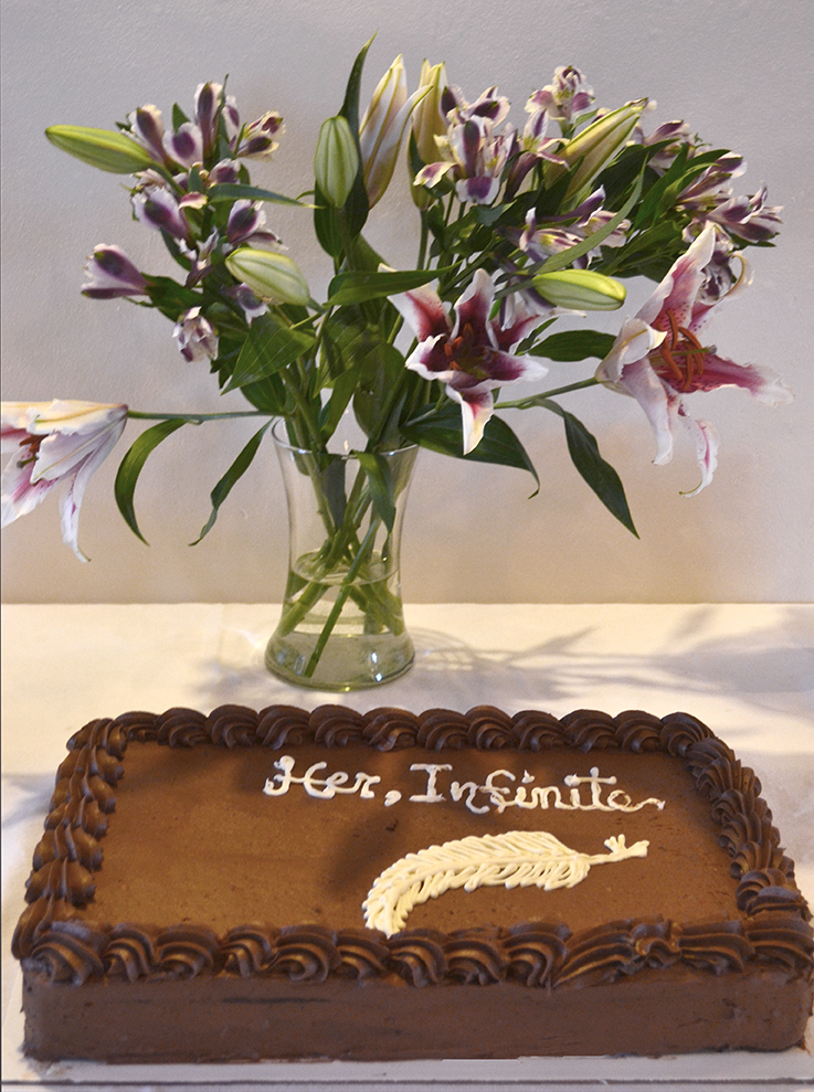 1 of 2 celebratory cakes (the other was carrot!) served at the reception for Her, Infinite, along with flutes of champagne, for toasting ~